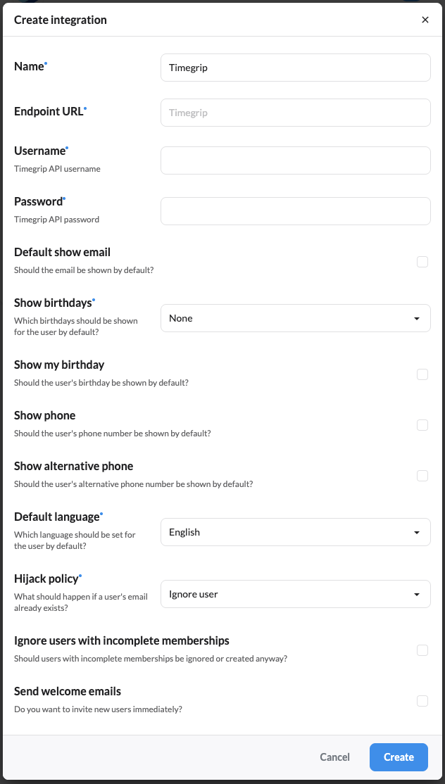 Learn how to set up an integration with Timegrip to automate user creation, updating, and deletion.